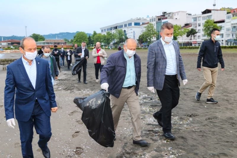 Ünye Belediye Başkanı Hüseyin Tavlı, AK Parti İlçe Başkanı Kenan Selim Argan, Gençlik Kolları Başkanı Abdulkadir Demir ve beraberindekiler ‘5 Haziran Dünya Çevre Günü’nde temiz bir çevreye dikkat çekmek amacıyla Ünye sahilinde çöp topladılar.