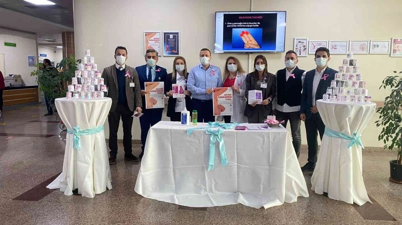 Hastane girişinde açılan stantta vatandaşlara yönelik bu kanserin farkındalığını oluşturmak için çeşitli broşürler dağıtılırken, verilen eğitim sonrası katılımcılara pembe kurdele takıldı.