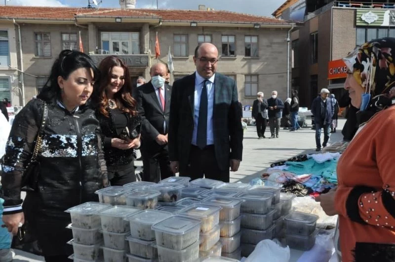 Afyonkarahisar Valisi Gökmen Çiçek’in eşi Sümeyra Çiçek, Sandıklı ilçesinde ‘Üreten Kadın Pazarı’nı ziyaret ederek, incelemelerde bulundu.