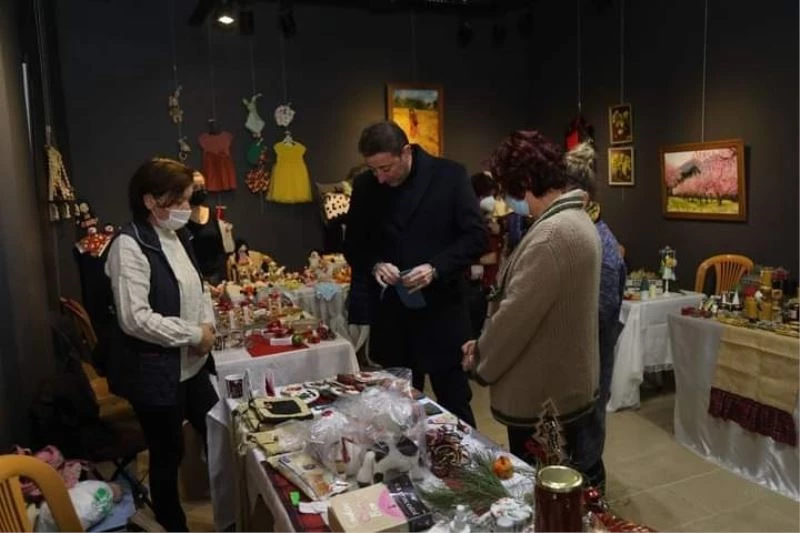 Balıkesir’in Bandırma İlçesinde Üreten Kadınlar Kooperatifinin açtığı sergiyi ziyaret eden Belediye başkanı Tolga Tosun Kadınlarla sohbet etti.