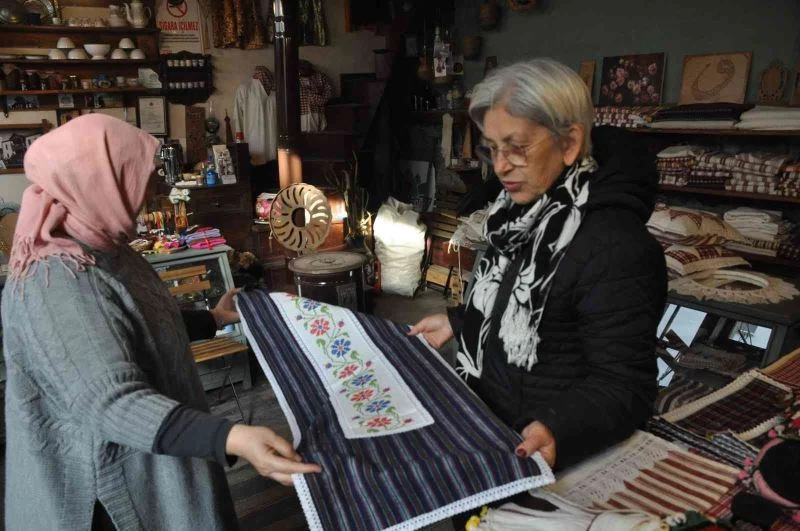 Bolu’nun Mudurnu ilçesinde girişimci kadınlar, el emeği göz nuru ürünlerini kurdukları tezgahlarda satışa sunuyor.