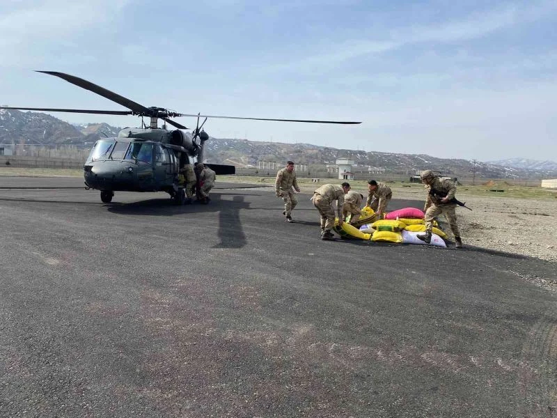 Bingöl’ün Genç ilçesinde kar nedeniyle yolun kapalı olmasından dolayı hayvanlarına yem ulaştıramayan üreticinin imdadına jandarma yetişti. Askeri helikoptere yüklenen yemler köye ulaştırıldı.