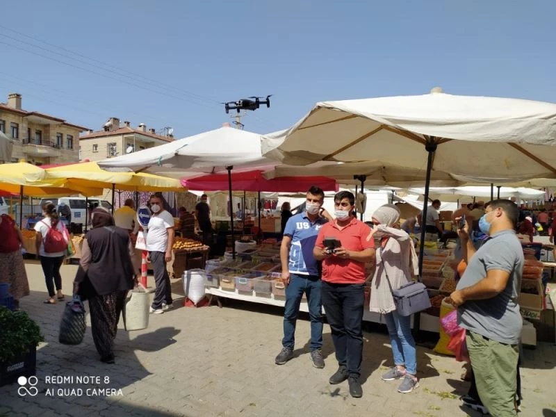 Ürgüp’te pazar alışverişi yapanların ateşi drone ile ölçüldü