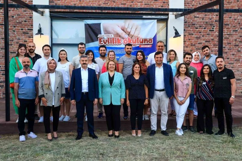 Türkiye’nin en iyi sosyal sorumluluk projelerinden birisi olarak gösterilen ’Evlilik Okulu’ projesi çerçevesinde düzenlenen ‘Evlilik Okulu’nun 3’nci dönem eğitimini tamamlayan kursiyerler mezuniyet belgelerini aldı.
