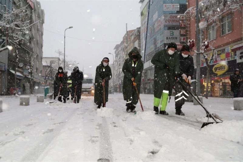 Uşak’ta sabah erken saatlerde kar yağışının başlamasıyla şehir adeta beyaza boyandı. Giderek şiddetini arttıran kar yağışının başlamasıyla Uşak Belediyesi’nin tüm ekipleri tarafından karla mücadele çalışmaları başlatıldı. Sabah saatlerinde başlayan çalışmalarda görev alan Temizlik İşleri Müdürlüğü’nden 100 kişilik bir ekip, şehir merkezindeki ana arterler ve yoğun bölgelerdeki kaldırımlarda kar küreme çalışması düzenledi. Diğer yandan yağışın başlamasıyla birlikte tüm ekipmanlarıyla birlikte sahaya inen Fen İşleri Müdürlüğü, şehrin ana arterleri, bağlantı yolları ve yoğun olan tüm bölgelerinde asfalt temizleme ve tuzlama çalışması gerçekleştirdi. Üç adet robot, on adet küçük kepçe, iki adet greyder, üç adet kürekli kamyon ve iki adet transit kürekli tuzlama aracı kullanılarak gerçekleştirilen çalışmalarda, ana arterlere, yoğun kavşaklara ve merkezde yer alan geniş caddelere öncelik verildi.