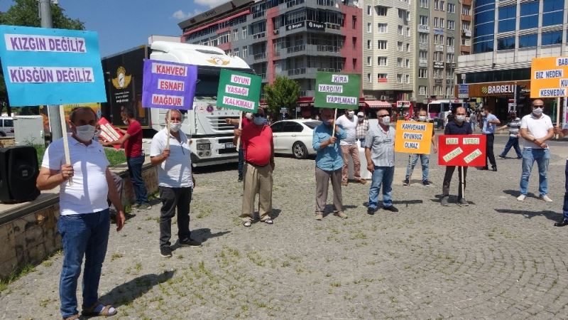 Valilik önünde düzenlenen basın açıklamasına Kahveciler Odası Başkanı Erkan Börekçi, bazı oda başkanları ve esnaflar katıldı. Korona virüs salgını nedeniyle oyunların yasak olduğu kahvelerde, esnafların işyeri kiraları, vergiler, SGK primleri, çalışan personel ücreti ve faturaları ödemekte zorluk çektiğini belirtti. Börekçi, "Hepimizce bilindiği üzere ülkemizde ve dünyada yaşanan Kovid-19 salgını nedeniyle, virüsün halk sağlığı üzerindeki etkilerini azaltmak maksadıyla Hükümetimizce alınan tedbirler doğrultusunda 16 Mart 2020 tarihinde İçişleri Bakanlığı’nın 81 il Valiliğine göndermiş olduğu genelgesi ile kahvehane, kıraathane, kafe, kafeterya, çay bahçesi, İnternet kafeler, playstation ve oyun salonlarının faaliyetleri geçici olarak durdurulmuş, normalleşme adımları doğrultusunda da 1 Haziran 2020 tarihinde kahvehane, kıraathane, kafe, çay bahçesi iş yerlerimiz oyun oynatılmaması kaydıyla tekrar faaliyetlerine başlamış olup İnternet Kafe ve Playstation Salonları ise 1 Temmuz 2020 tarihinde faaliyete geçti. İnsan sağlığı konusunda Hükümetimizin almış olduğu tüm tedbirleri saygıyla karşıladığımızı da açıkça belirtmek isteriz. Kahvehanelerimiz yaklaşık 500 yıllık bir kültürden gelmektedir. Vatandaşlarımız stres atmak, arkadaşlarıyla beraber hoşça zaman geçirmek için okey, tavla, oyun kağıdı gibi oyun oynamak için iş yerlerimize gelmektedir. Normalleşme adımları kapsamında açılan kahvehanelerimizde oyun oynatılmaması nedeniyle müşterilerimiz iş yerlerimize gelmemekte bu nedenle açılan kahvehanelerimizde esnafımız günlük masraflarını dahi karşılayamamaktadır. Öte yandan bu zorlu süreçte iş yerlerimizin kiraları, vergilerimiz, SGK primlerimiz, elektrik, su, personel, doğalgaz giderlerimiz devam etmekte olup, mevcut koşullar altında bu giderlerin ödenmesi mümkün bulunmamaktadır. Anayasamızın 173. Maddesine göre Devlet, Esnaf ve Sanatkarları koruyucu ve kollayıcı tedbirleri almakla yükümlüdür. Türkiye genelinde 100 binden fazla esnafımız sadece günlük kazancıyla yaşamını idame ettirmekte, yanında çalışanlarının ücretlerini de günlük yevmiye olarak ödemektedir. Mevcut koşullar altında esnafımız bu haliyle işçisinin yevmiyesini dahi ödeyemez ve neredeyse tamamen kepenk kapatma noktasına gelmiştir" dedi.