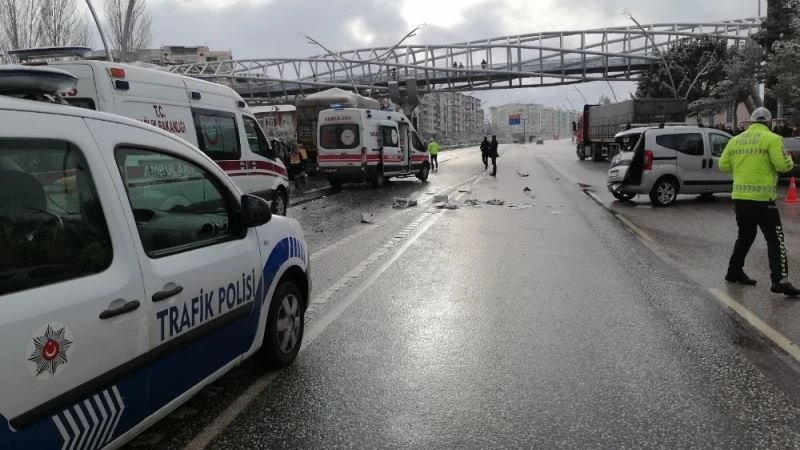 Uşak’ta akşam saatlerinde eş zamanlı 2 zincirleme kazası meydana geldi. Kazalardan biri İzmir-Ankara karayolu üzerinde Atatürk Bulvarında Şehit Mehmet Bozkuş Kavşağı’nda meydana geldi. İddialara göre 64 DD 353 plakalı ticari araç sürücüsü S.Ç., henüz belirlenemeyen bir sebepten dolayı araç kontrolünü kaybetti. Araç kontrolü kaybolan araç yan şeride geçtiği esnada arkadan gelen C.Y. kontrolündeki 64 FS 456 tır, önce kontrolü kaybolan araca hemen ardından da yolda seyir halinde olan M.K. idaresindeki 50 BE 900 çarptı. İhbarlar üzerine olay yerine sağlık ekipleri ve polis sevk edildi. Kazada yaralanan bir şahıs, sağlık ekiplerince Uşak Eğitim ve Araştırma Hastanesi’ne kaldırıldı.