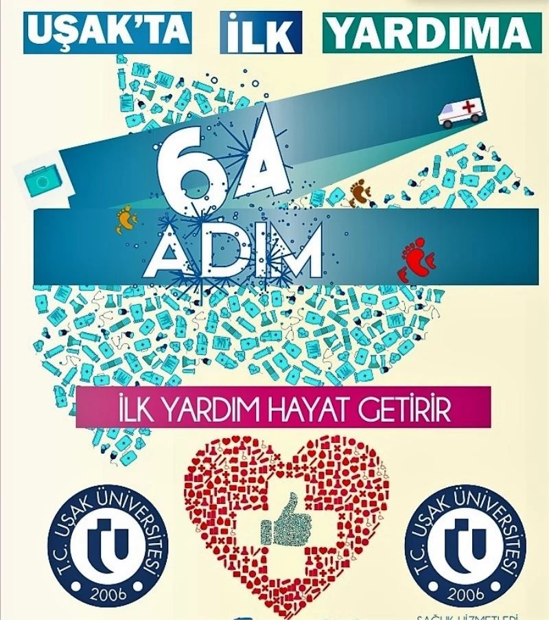 Uşak Üniversitesi (UÜ) İletişim Fakültesi öğretim görevlisi Prof. Dr. Murat Sezgin’in eğitim verdiği Sosyal Sorumluluk Kampanyaları dersi çerçevesinde Sağlık Hizmetleri MYO İlk ve Acil Yardım Bölümü Öğretim Görevlisi Hatice Sağcan koordinatörlüğünde Halkla İlişkiler ve Reklamcılık 4. sınıf öğrencileri Ömer Küçük, Sayalınur Aydın, Beytullah Taner Yaldız, Mehmet Bilal Şamoğlu ile İlk ve Acil Yardım Bölümü 2. sınıf öğrencileri Şerife Demir ve Gülayda Selçuk el ele vererek “Uşak’ta İlk Yardıma 64 Adım” projesini hayata geçirdi.