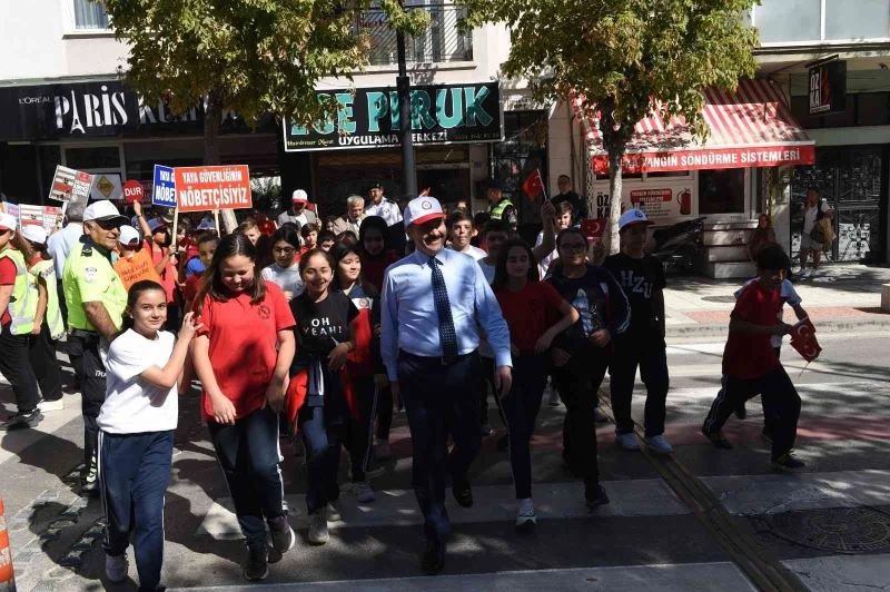 Uşak Valisi Turan Ergün, Halit Ziya Uşaklıgil Ortaokulu önünde “Yayalara Öncelik Duruşu, Hayata Saygı Duruşu” mottosuyla düzenlenen “Önce Yaya” farkındalık etkinliğine katıldı.