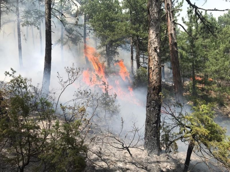 Uşak’ın Banaz ilçesinde 2 dekarlık ormanlık alanda etkili olan yangını söndürmek için havadan ve karadan müdahale ediliyor.