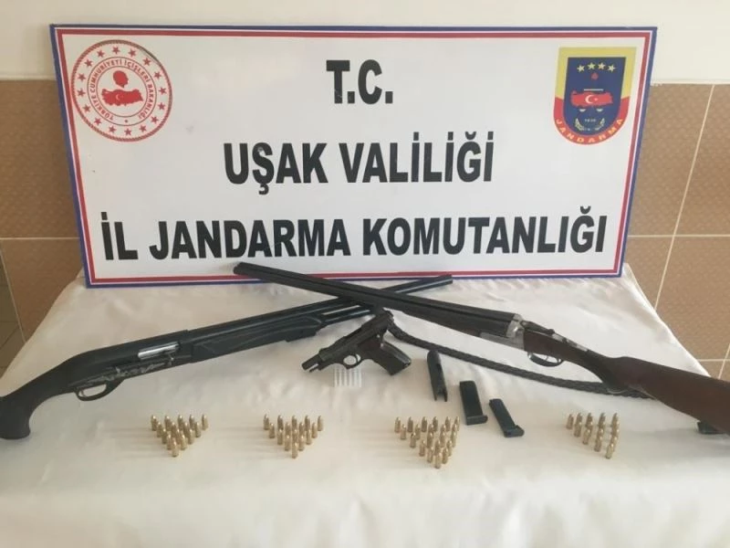 Uşak İl Jandarma Komutanlığı ekiplerince yapılan istihbarı çalışmalar neticesinde sorumluluk bölgesinde 2 şüphelinin silah ve mühimmat kaçakçılığı yapacakları öğrenildi. Silah kaçakçılığına yönelik adli makamlardan alınan arama kararı doğrultusunda şüphelilere yönelik operasyon gerçekleştirildi. İkametgahlarında yapılan aramalarda, 2 adet ruhsatsız av tüfeği, 1 adet ruhsatsız tabanca ve 66 adet tabanca mühimmatı ele geçirildi.