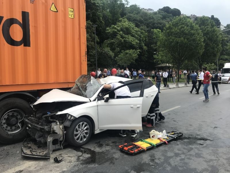 Kaza, Üsküdar’da Harem Sahil Yolu Caddesi üzerinde saat 12.00 sıralarında meydana geldi. İddiaya göre aşırı hızla ilerleyen ve içerisinde iki kişinin bulunduğu 41 VC 044 plakalı otomobil, yol kenarında park halinde bulunan 41 VE 594 plakalı tıra arkadan çarptı. Çarpmanın şiddetiyle otomobilde bulunan iki kişi yaralanırken, birisi araç içerisinde sıkıştı. Olay yerine itfaiye ve sağlık ekipleri sevk edildi. Otomobilde sıkışan kişi itfaiyenin müdahalesiyle kurtarılarak ambulansa koyuldu. Yaralılar olay yerindeki ilk müdahalenin ardından hastaneye kaldırıldı.