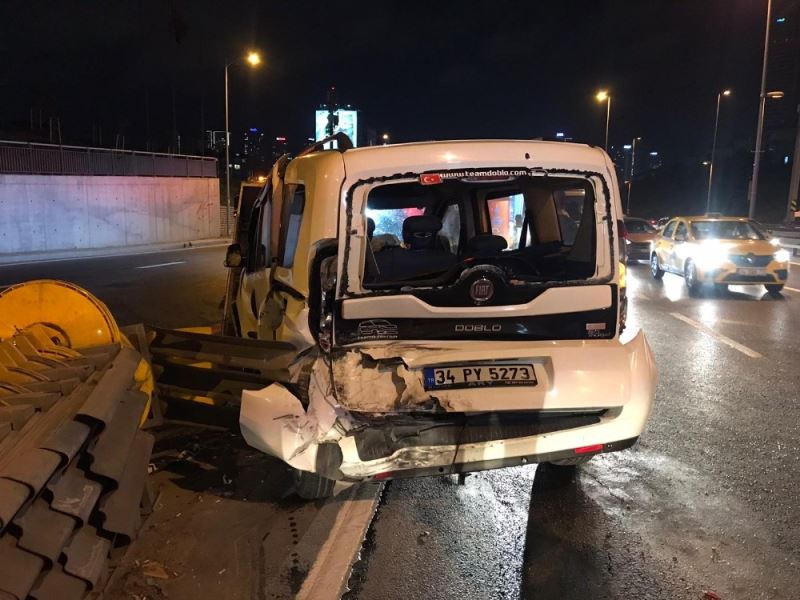 Kaza, Üsküdar’da 15 Temmuz Köprüsü istikametinde Ataşehir, Ünalan ayrımı mevkinde saat 00.00 sıralarında meydana geldi. Kimliği henüz belirlenemeyen 34 CZL 772 plakalı otomobil sürücüsü 15 Temmuz Köprüsü istikametinde Osman Türk’e ait 34 PY 5273 plakalı hafif ticari araca hızla çarptı. Çarpmanın etkisiyle hafif ticari araç bariyerlere çarparak savruldu. Çarpmanın etkisiyle sürücü araç içerisinde sıkıştı. Otomobil’de bulunan 2 kişi de yaralandı. Çevrede bulunan vatandaşların ihbarı üzerine olay yerine polis, itfaiye ve acil servis ekipleri sevk edildi. Polis ekipleri geniş güvenlik önlemleri alarak trafiğin akışını sağladı. İtfaiye ekipleri sıkışan sürücüleri çıkararak sağlık ekiplerine teslim etti. Sağlık ekipleri yaralılara ilk müdahaleyi olay yerinde yaparak çevrede bulunan hastanelere kaldırdı. Kaza nedeniyle kapanan yolda trafik yoğunluğu oluştu. Kazada ölen olmazken 3 kişi yaralandı. Kazaya karışan araçlar kullanılamaz hale geldi.