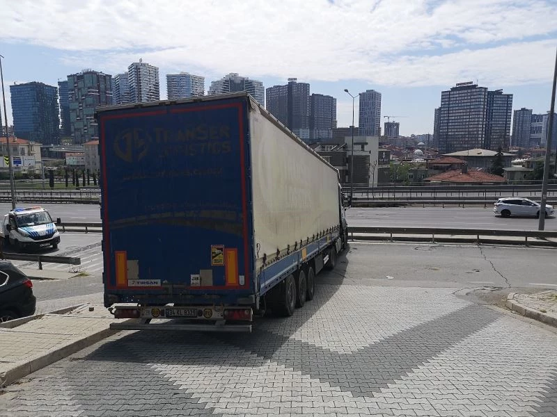 Üsküdar’da yağmurdan dolayı kayganlaşan yolda kayan tır yolu kapattı