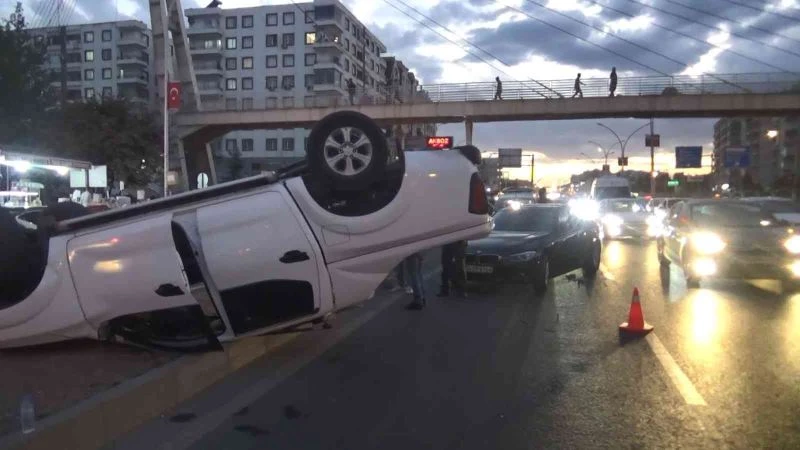Diyarbakır’da üst geçidi kullanmayıp refüjdeki korkulukların üzerinden atlayarak karşıya geçmeye çalışan çocuklara çarpmamak için sürücüsünün direksiyonu kırdığı araç takla atarak durabildi. Araçtaki 2 kişi kazadan burunları kanamadan kurtuldu.