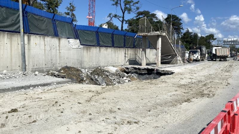 Eyüpsultan’da çöken üst geçidin bulunduğu alanda çalışmalar devam ediyor. Yolda trafik akışı çift şerit olarak sağlandığı için araç yoğunluğu oluşurken, ekipler onarma çalışmalarına devam ettiği görüldü.