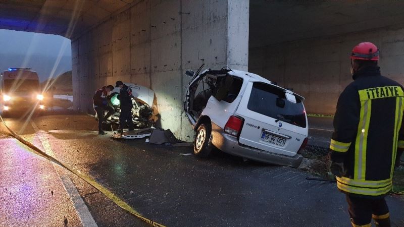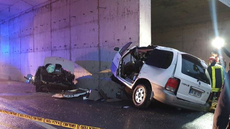 Üst geçidin duvarına çarpan cip ikiye bölündü: 2 ölü, 1 yaralı