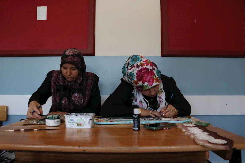NİĞDE - AHMET DEMİRCAN - Niğde Halk Eğitim Merkezi Müdürlüğü tarafından açılan el sanatları kursunda usta öğreticilik yapan depremzede Dilek Sayık, mahallesindeki kadınların hem sosyalleşmesine hem de aile bütçelerine katkı sağlamasına yardımcı oluyor.