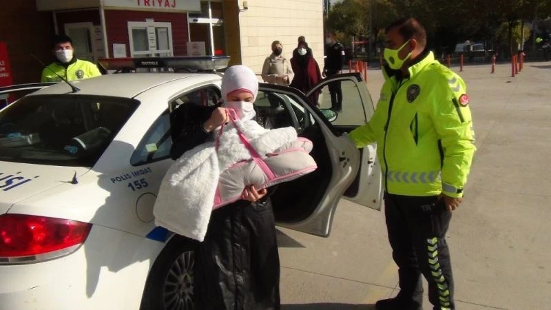 Edinilen bilgilere göre, İnegöl Alanyurt yolunda uygulama yapan İnegöl trafik ekipleri gelen elektrikli bisikleti durdurdu. Üzerinde karı koca ve kucaklarında bebeği olan ailenin telaşlı olduğu görüldü. Ekipler yaptıkları incelemede 1,5 aylık Sena Nasif’in ateşinin yüksek olduğunu fark ettiler. Bunun üzerine polis ekipleri kendi arabalarına aileyi alarak İnegöl Devlet Hastanesi Acil Servisine getirdi. Polisler tarafından getirilen 1,5 aylık bebek İnegöl Devlet Hastanesinde tedavi altına alındı. Trafik ekipleri de normal görevlerine daha sonra devam etti. Sena’nın sağlık durumunun ise iyi olduğu öğrenildi.