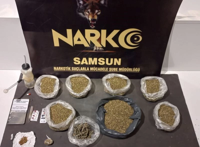 Edinilen bilgiye göre, Samsun Cumhuriyet Başsavcılığı koordinesinde Samsun Emniyet Müdürlüğü Narkotik Suçlarla Mücadele Şube Müdürlüğü ekipleri, uyuşturucuyla mücadele kapsamında yaptıkları takip ve çalışmalar doğrultusunda İlkadım ilçesi Kadıköy Mahallesi’nde irtibatlı olduğu şahıslara uyuşturucu madde satışı yaptığı istihbar edilen O.Y. ve F.Ö.’nin içinde bulunduğu araç durduruldu. Şüphe üzerine araçta ve şahısların üzerinde yapılan aramada 28 kapsül sentetik ecza ele geçirildi. Soruşturmanın devamında gözaltına alınan O.Y. ve F.Ö. isimli şahısların ikametlerinde yapılan aramada 9 parça halinde toplamda 1099,91 gram bonzai (sentetik kannabinoid) maddesi, 1 parça halinde 28,30 gram esrar maddesi, 5 kapsül sentetik ecza, 2 parça halinde 0,54 gram metamfetamin maddesi ve 2 adet uyuşturucu madde kullanımına yarar aparat ele geçirildi. Soruşturmanın devamında yapılan çalışmalarda olayla ilgisi olduğu tespit edilen M.U. ve A.Ü. adlı kadın da gözaltına alındı. Olayla ilgili soruşturma devam ediyor.