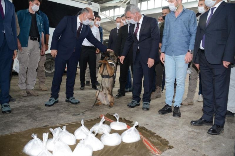 Uyuşturucu kaçakçılarının korkulu rüyası olan narkotik madde arama köpeği Bozo, katıldığı operasyonun ardından görevini başarıyla yerine getirdikten sonra Emniyet Genel Müdürü Mehmet Aktaş’a ayaklarının üzerinde durarak selam verdi.