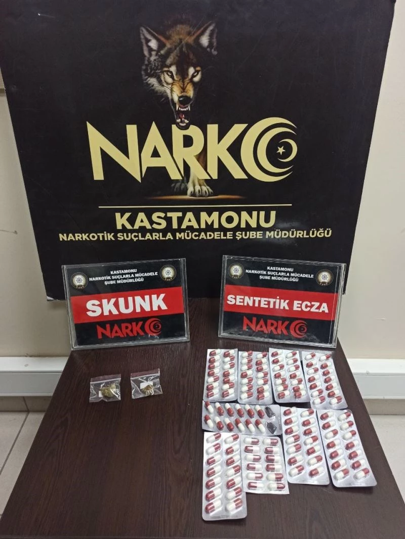 Edinilen bilgiye göre, Kastamonu İl Emniyet Müdürlüğü Narkotik Suçlarla Mücadele Şube Müdürlüğü ekipleri tarafından uyuşturucu ile mücadele çalışmaları neticesinde şüphe üzerine bir şahsın üstünde aracında arama yapıldı. Yapılan aramada 1.36 gram skunk ve 122 adet sentetik ecza hapı ele geçirildi. Olayla ilgili şüpheli şahıs gözaltına alınarak adliyeye sevk edildi.
