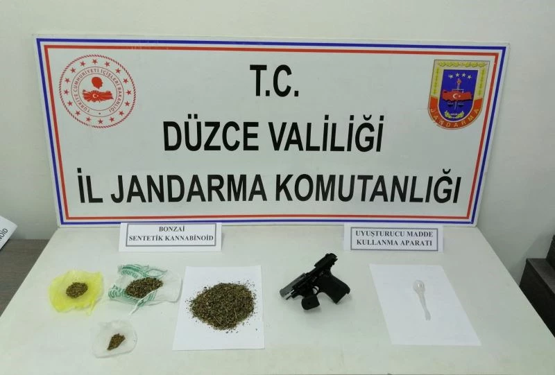 Düzce İl Jandarma Komutanlığı KOM Şube Müdürlüğü ekiplerince uyuşturucu satıcılarına yönelik yapılan istihbarı çalışmalar neticesinde belirlenen 3 adrese eş zamanlı operasyon düzenlendi. Operasyonlarda uyuşturucu madde ticareti yaptığı tespit edilen 4 kişi gözaltına alındı. Şahısların ikamet ve iş yerlerinde yapılan aramalarda 4 ayrı paket halinde toplam 40 gram sentetik uyuşturucu, 1 adet kuru sıkından çevirme tabanca, 1 adet uyuşturucu madde kullanma aparatı ele geçirildi. Olayla ilgili soruşturma süresince yapılan 3 ara yakalamada da 3 gram sentetik uyuşturucu ele geçirildi.