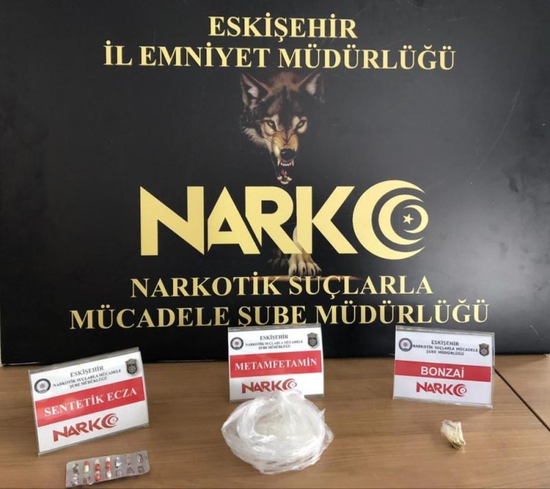 Eskişehir’de polis ekipleri tarafından yapılan iki farklı çalışmada toplam 521,35 gram toz esrar, 68,10 gram metamfetamin, 0,67 gram bonzai ve 5 adet sentetik ecza ele geçirildi.