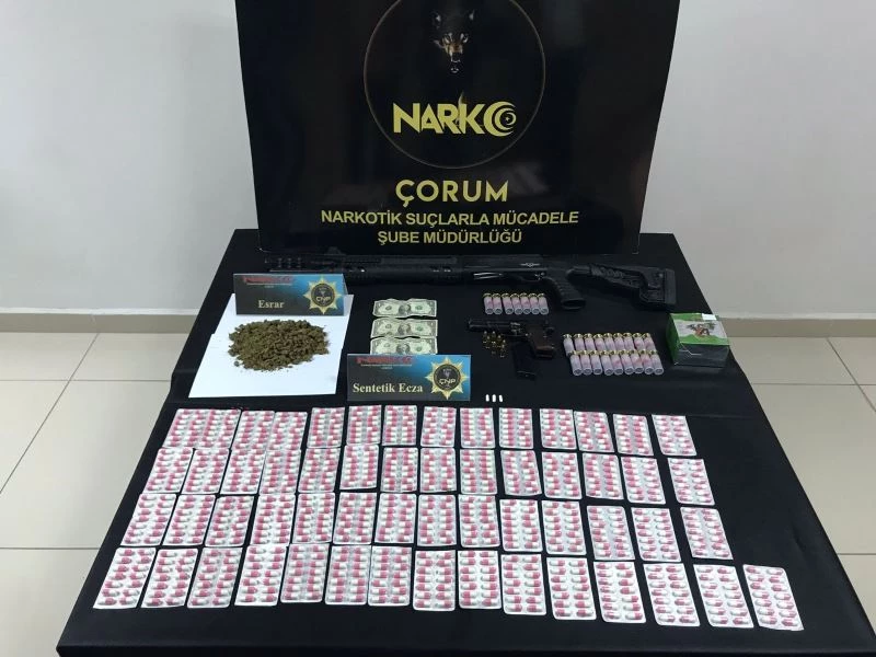 Edinilen bilgilere göre, Narkotik Suçlarla Mücadele Şube Müdürlüğünce uyuşturucu madde satışının engellenmesine yönelik yapılan çalışma başlatıldı. Narkotimler tarafından bu kapsamda düzenlenen operasyonda 801 adet sentetik ecza, 89 gram esrar maddesi, 1 adet ruhsatsız av tüfeği ve 25 adet fişek, 1 adet tabanca ve 7 adet fişek, 3 adet F-G ve A seri numaralı 1 dolar para ele geçirildi. Polis ekiplerinin “TCK 188-Uyuşturucu Madde İmal ve Ticareti” suçundan şüpheli şahsı yakalama çalışmaları devam ediyor.