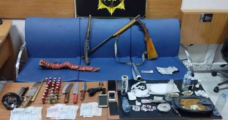 M.D., A.A., T.A., ve U.G., isimli şahısların bulunduğu eve gerçekleştirilen operasyonda 64 gram metamfetamin, 95 gram bonzai, 22 adet adet sentetik ecza maddesi, 1 adet ruhsatsız tabanca, 2 adet ruhsatsız tüfek ele geçirildi. Gözaltına alınarak emniyette götürülen ve burada işlemleri tamamlanan 4 şahıstan M.D., ile A.A., çıkarıldığı mahkemece tutuklanarak cezaevine gönderildi.