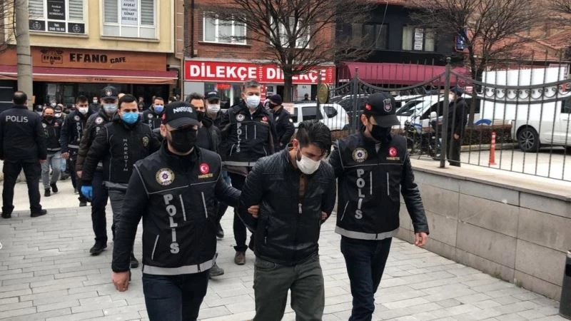 Edinilen bilgilere göre; Eskişehir Narkotik Suçlarla Mücadele Şube Müdürlüğü ekipleri sokak satıcılarına yönelik Eskişehir merkezli olan geniş bir çalışma başlattı. Kent merkezindeki 6 mahallenin yanı sıra Kayseri, Bursa ve İstanbul illerinde eş zamanlı gerçekleştirilen baskınlarda 8 şüpheli şahıs yakalandı, çok miktarda uyuşturucu madde ve silah ele geçirildi. ‘Uyuşturucu Madde Ticareti Yapmak’ suçuyla mahkemeye çıkarılan 8 şüpheliden 5’i tutuklanarak ceza evine gönderilirken 3 şüpheli adli kontrol şartıyla serbest bırakıldı.