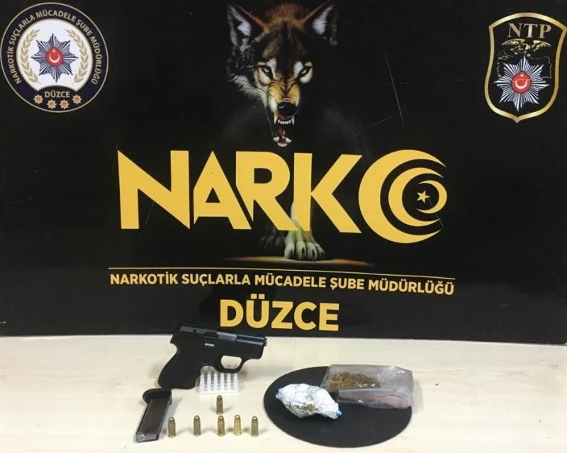 Düzce İl Emniyet Müdürlüğü Narkotik Suçlarla Mücadele Şube Müdürlüğü ekiplerince Düzce Cumhuriyet Başsavcılığı tarafından Çamköy ve Azmimilli Mahallelerinde uyuşturucu operasyonu düzenlendi. Uyuşturucu Madde Ticareti yaptığı tespit edilen şüpheli 2 şahıs emniyet ekiplerince yakalandı. Yakalanan şüphelilerin üzerilerinde ve ikametlerinde yapılan aramada 7 gram Esrar, bir miktar Metamfetamin maddesi, Uyuşturucu Madde İçiminde kullanılan aparat, 7,65 mm ruhsatsız tabanca ve 6 adet 7,65 mm fişek ele geçirildi. Şüpheli şahıslar tamamlanan işlemlerinin ardından Uyuşturucu Madde Ticareti Yapmak suçundan sevk edildiği Sulh Ceza Hakimliğince tutuklanarak cezaevine gönderildi. Soruşturma kapsamında işlem yapılan şahıslardan uyuşturucu madde aldığı tespit edilen 5 şahsın ikametlerinde ve üzerilerinde yapılan aramada ise 4 gram Sentetik Kannobinoid, 2 gram Esrar, 2 adet ruhsatsız tabanca ve 7 adet 7,65 mm fişek ele geçirildi. Şüpheli beş şahıs hakkında Uyuşturucu Madde Bulundurmak Kullanmak ve 6136 SKM suçundan adli işlem uygulandı.