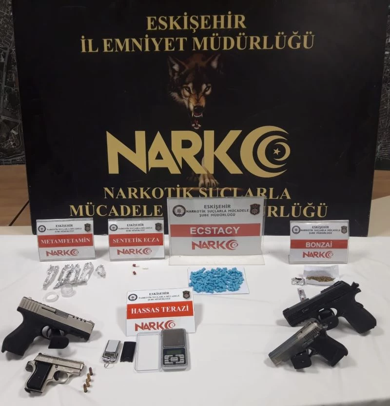 İl Emniyet Müdürlüğü Narkotik Suçlarla Mücadele Şube Müdürlüğü ekipleri tarafından, Tepebaşı ilçesinde uyuşturucu satıcılarına yönelik operasyon düzenlendi. Sokak satıcılarının yakalanması çerçevesinde yapılan çalışmalarda O.A. adlı şüpheli gözaltına alındı. Yapılan aramalarda; 143 adet ecstacy uyuşturucu hap, 8,23 gram metamfetamin, 3,04 gram bonzai, 0,74 gram gelen esrar, 5 sentetik ecza hap, 4 tabanca, 4 mermi ve 2 adet hassas terazi ele geçirildi. Uyuşturucu madde ticareti yapmak suçundan gözaltına alınan O.A., emniyetteki işlemlerinin ardından adliyeye sevk edildi.