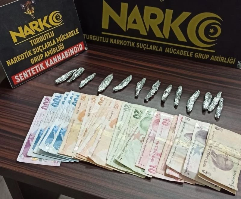 Manisa İl Emniyet Müdürlüğü Turgutlu Narkotik Suçlarla Mücadele Grup Amirliği görevlilerince Turgutlu ilçesinde durdurulan şahsın üzerinde yapılan aramada 1,70 gram sentetik kannabinoid (Bonzai) maddesi ele geçirildi. Konuyla ilgili şahsın uyuşturucu maddeyi satın aldığı şahısların üzerinde yapılan aramada ise, 13 parça halinde 9,61 gram sentetik kannabinoid maddesi, bin 90 TL uyuşturucu madde ticaretinden elde edildiği değerlendirilen para ele geçirildi. 2 şüpheli şahıs uyuşturucu veya uyarıcı madde imal ve ticareti yapmak suçundan gözaltına alındı. Emniyetteki işlemleri tamamlanarak adli makamlara sevk edilen şüphelilerden biri tutuklanarak cezaevine gönderildi.