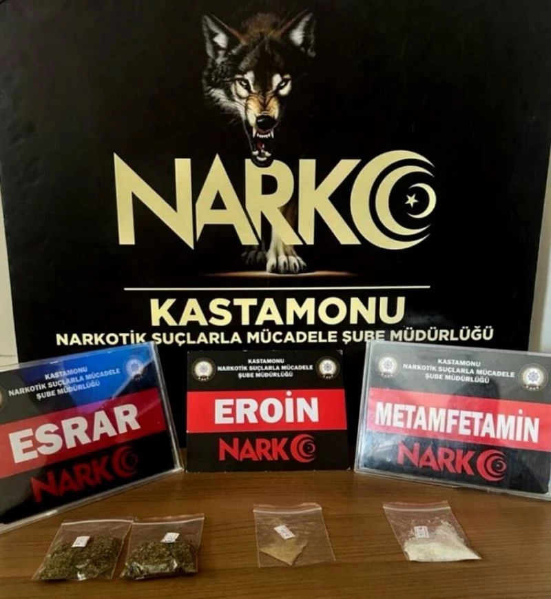 Edinilen bilgiye göre, Kastamonu İl Emniyet Müdürlüğü Narkotik Suçlarla Mücadele Şube Müdürlüğü ekipleri tarafından uyuşturucu ve uyarıcı madde kullanan ve satan şahısların yakalanması için yürütülen çalışmalar çerçevesinde, Kastamonu’ya uyuşturucu madde getireceği bilgisine ulaşılan şüpheli şahısların üzerinde arama yapıldı. Narkotik köpeği ‘Ceku’ ile yapılan aramalarda, 20,07 gram metamfetamin, 8,61 gram esrar, 0,37 gram eroin ve ecstacy hap ele geçirildi. Olayla ilgili yakalanan 5 şahıs gözaltına alındı. Uyarıcı madde etkisi altında araç kullanan 1 şahsa da işlem yapıldı.
