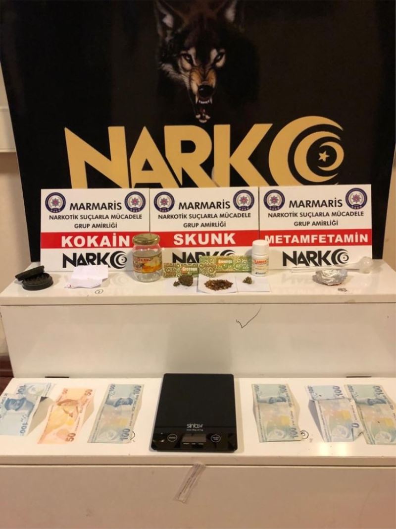 Edinilen bilgiye göre, Narkotik Suçlarla Mücadele Şube Müdürlüğü ile İlçe Emniyet Müdürlüğü görevlilerince uyuşturucu madde ticareti ve kullanımını önlemeye yönelik olarak son 24 saatte yapılan 2 operasyonda toplam 2 kişi yakalandı. Polis ekiplerinin yaptığı aramalarda çeşitli tür ve miktarlarda uyuşturucu madde ve hassas teraziler ele geçirildi. Marmaris Savcılığı tarafından yürütülen soruşturmada, yakalanan B. O.(23) ve C. A.(33) mahkeme tarafından tutuklanarak cezaevine gönderildi.