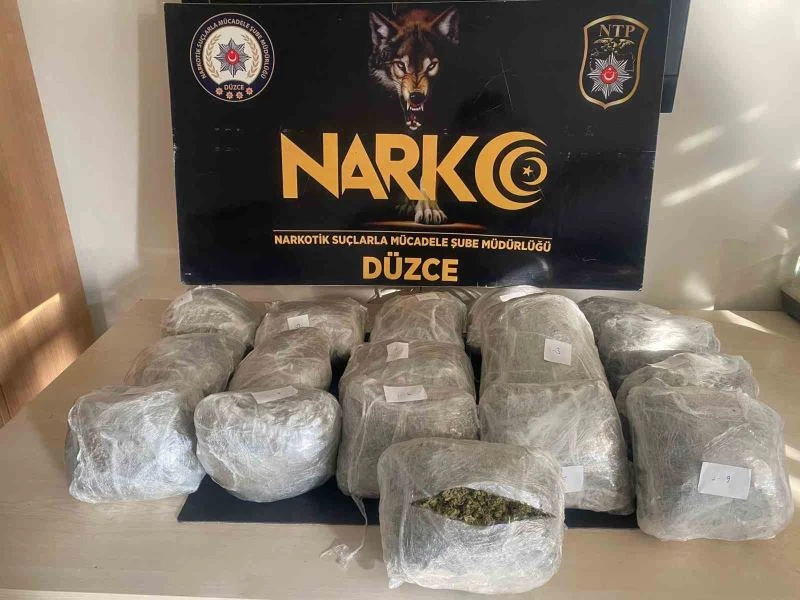 Düzce Cumhuriyet Başsavcılığınca uyuşturucu madde ticareti yapanlara yönelik başlatılan soruşturma çerçevesinde bir ihbarı değerlendiren Düzce Emniyet Müdürlüğü Narkotik Suçlarla Mücadele Şubesi ekipleri, TEM otoyolu Düzce kesiminde, Batman’dan İstanbul’a gitmekte olan aracı durdurdu. Araçta yapılan aramada 9 kilogram 645 gram esrar maddesi yakalandı. Ayrıca yapılan aramada suçtan kazanıldığı belirlenen bir miktarda para ele geçirildi. Araç içinde bulunan N.R. ve A.D. isimli şahıslar ise gözaltına alınarak Düzce Emniyet Müdürlüğü Narkotik Suçlarla Mücadele Şubesine götürüldü.