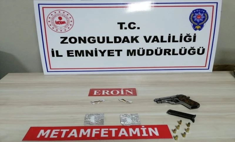 Zonguldak Emniyet Müdürlüğü Narkotik Suçlarla Mücadele Şube Müdürlüğü ekipleri 2 ilçede yaptıkları operasyonla uyuşturucu madde ve silah ele geçirdi.