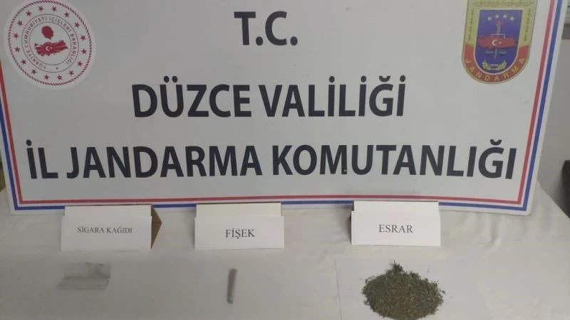 Halkın huzur ve güvenliği için 24 saat görev yapan Jandarma ekipleri Düzce’de uyuşturucu satışı, uyuşturucu kullanımı ve bulundurmaya göz açtırmıyor. Düzce ili Merkez ilçesi Beyköy Jandarma Komutanlığı sorumluluk alanı 2. OSB bölgesinde akşam saatlerinde yapılan önleyici hizmet devriyesi esnasında L. K. şahsın üzerinde yapılan arama sonucunda kağıda sarılmış halde 3 gram kubar esrar ele geçirildi.