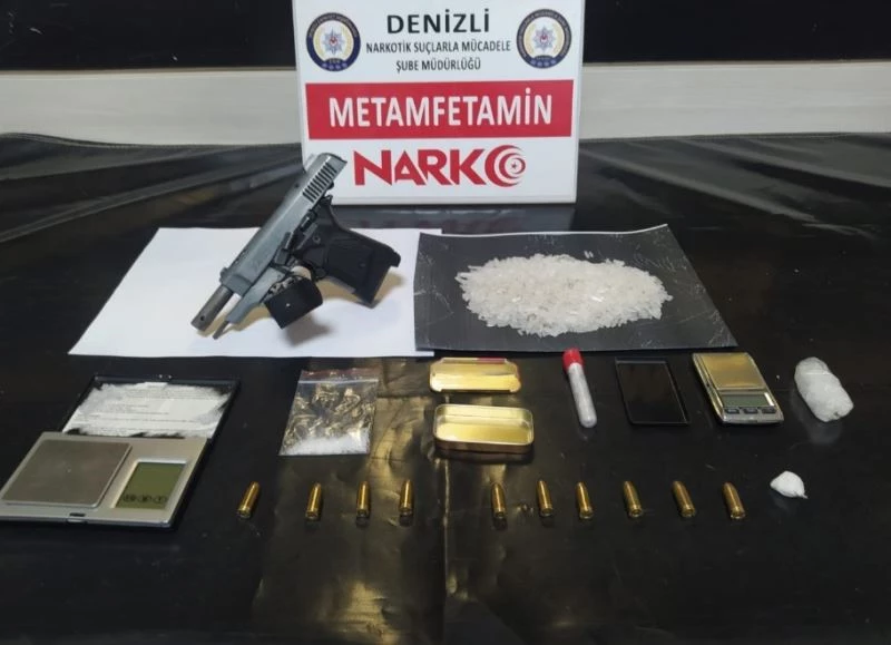 Denizli’de uyuşturucu madde ticareti yapan bir gruba yönelik gerçekleştirilen operasyonda 3 şüpheli tutuklanırken, ruhsatsız tabanca ve metamfetamin maddesi ele geçirildi.