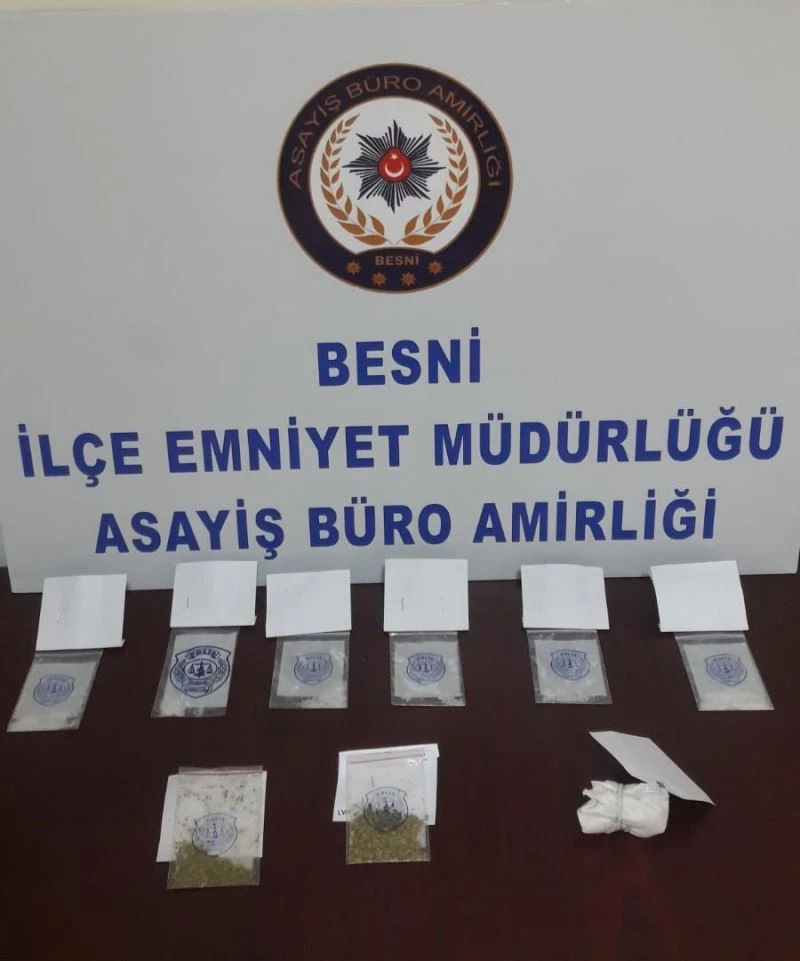 Edinilen bilgilere göre, Narkotik Suçlarla Mücadele Şube Müdürlüğü ekipleri ile Besni ilçe Emniyet Müdürlüğünün yapmış oldukları denetimler kapsamında durumlarından şüphelenilerek durdurulan araçta arama yapıldı. N.A., A.P., B.Ö., B.Z, A.Ö., O.Y. ve R.S., isimli kişilerin içerisinde bulunduğu araçtan 10 paket halinde alüminyum folyo sarılı toplam 7,33 gram metamfetamin, üç paket halinde ise, toplam 7,05 gram sentetik kannabinoid maddesi ele geçirildi. Uyuşturucu maddeleri muhafaza altına alınırken şahıslardan N.A., ile R.S., isimli 2 şahıs gözaltına alındı. Emniyette ifadeleri tamamlanan N.A., ile R.S., adliyeye sevk edildi. Şahıslardan N.A., çıkarıldığı mahkemece tutuklanarak cezaevine gönderildi. Öte yandan polis ekipleri A.P., B.Ö., B.Z, A.Ö., ve O.Y., isimli şahıslara içmek için uyuşturucu madde bulundurmaktan haklarında yasal işlem gerçekleştirdi.