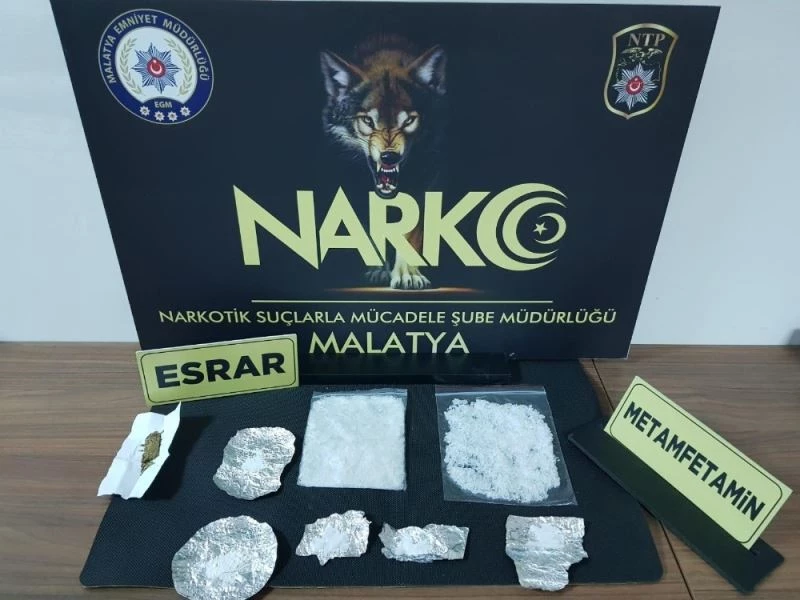 Edinilen bilgiye göre, Malatya Emniyet Müdürlüğü Narkotik Suçlarla Mücadele Şube Müdürlüğü görevlilerimizce torbacı olarak tabir edilen sokak satıcılarına yönelik operasyon gerçekleştirildi. Yapılan analiz ve fiziki takipli çalışma neticesinde gerçekleştirilen operasyonda, 120 gram metamfetamin maddesi, 1,97 gram esrar, 1,92 gram kokain maddesi ele geçirildi.