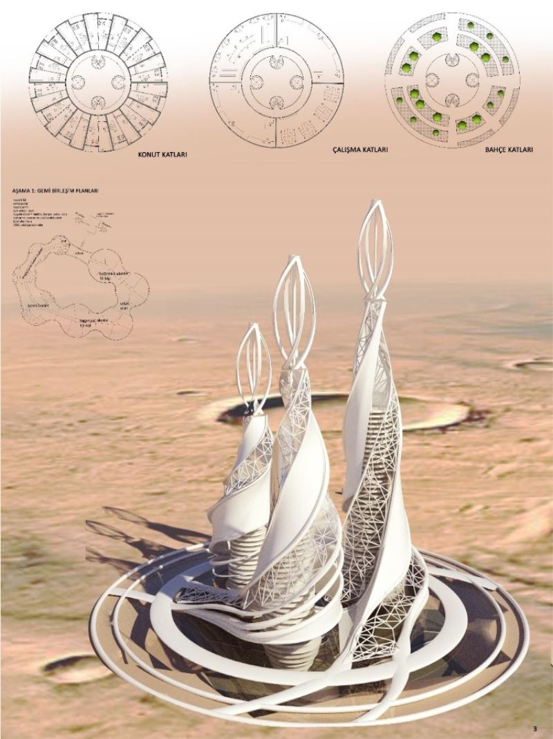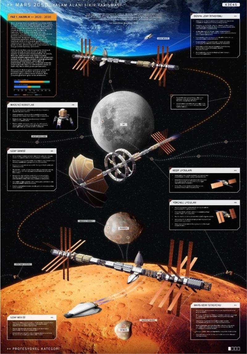 Birçok alanda Türkiye’de ilkleri gerçekleştiren Bursa, Büyükşehir Belediyesi ve Bursa Teknik Üniversitesi işbirliğinde adından çok söz ettirecek bir projeye daha imza attı. ‘Uzay mimarlığı ve dış gezegen şehirciliği’ konularını ele alan toplam 30 bin lira ödüllü “Mars 2050: Yaşam alanı fikir yarışması” yoğun bir katılımla tamamlandı. Uzay mimarlığı ve dış gezegen şehirciliği konularının ele alındığı yarışmada aşırı zorluklar içeren koşullarda, Mars gibi yeni nesil vizyon ve projelendirme sahalarında ve diğer gök cisimlerinde ortam, kaynak ve yaşam alanı ihtimali araştırması, tasarımı ve inşası üzerine yeni gelişen faaliyet alanına ürün verilmesi amaçlandı. Öğrenci ve profesyonel olmak üzere iki kategoride gerçekleşen yarışmada birbirinden ilginç fikirler ortaya çıktı. Yarışmaya öğrenci kategorisinde 29, profesyonel kategoride ise 18 kişi katıldı. Değerlendirme ve Koordinasyon Sorumluluğunu Dr. Öğretim Üyesi Ersan Koç’un yaptığı jüri, her iki kategoride de dereceye giren eserleri belirledi.