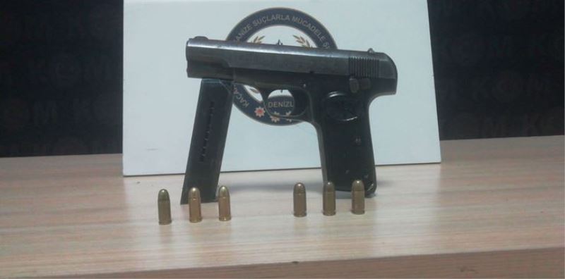 Denizli İl Emniyet Müdürlüğü Kaçakçılık ve Organize Suçlarla Mücadele Şube Müdürlüğü ekipleri, kaçakçılık suçlarıyla ilgili olarak aranan şahısları yakalamaya yönelik yaptığı operasyon sonucunda, bilişim sistemleri, banka veya kredi kurumlarının araç olarak kullanılması suretiyle dolandırıcılık suçundan aranan ve hakkında 5 yıl kesinleşmiş hapis cezası bulunan bir şüpheli şahsı yakalayarak gözaltına aldı. Operasyonda, 1 adet 9 milimetre silah, 1 adet şarjör ve 6 adet fişek ele geçirildi.