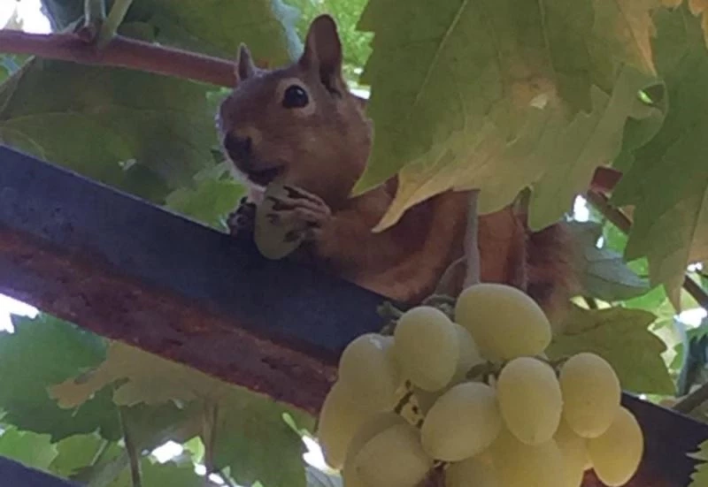 Manisa’da evinin bahçesindeki asmada bulunan üzümlerinin sürekli azaldığını fark eden adam bir gün asmadan gelen sese baktığında neye uğradığını şaşırdı. Üzümlerinin bir sincap tarafından yenildiğini tespit eden adam sincabın o sevimli anlarını cep telefonuyla kaydetti.