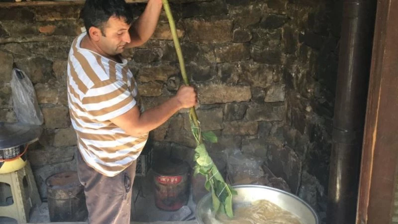 Hakkari’nin Çukurca ilçesine bağlı Narlı köyünde yaşayan vatandaşlar, yaptıkları üzüm pekmeziyle ailelerinin geçimini sağlıyor.