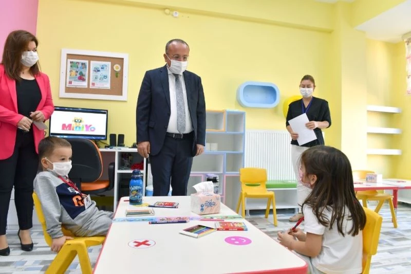 Öte yandan, Vali Ali Fuat Atik, Merkezefendi Kaymakamı Dr. Adem Uslu ile İl Milli Eğitim Müdürü Mahmut Oğuz ilk ders zilinde Merkezefendi Yenişehir Anaokulu’nu ziyaret etti.