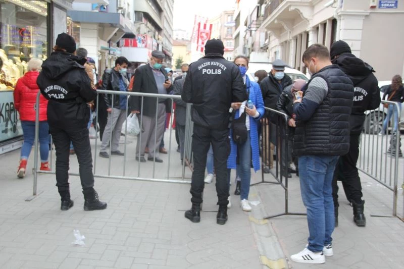 Her gün binlerce insan trafiğinin yaşandığı Mecidiye Caddesi’nde bir vatandaş HES kodu riskli çıktı. Riskli çıkan vatandaşı kalabalıktan uzak tutan hazır kuvvet polisi daha sonra bu vatandaşı filyasyon ekibine teslim etti. Şehirde bir yandan HES Kodu uygulaması devam ederken bir yandan da İl Sağlık Müdürlüğü araçları hoparlörlerle korona virüs uyarılarında bulunuyor.