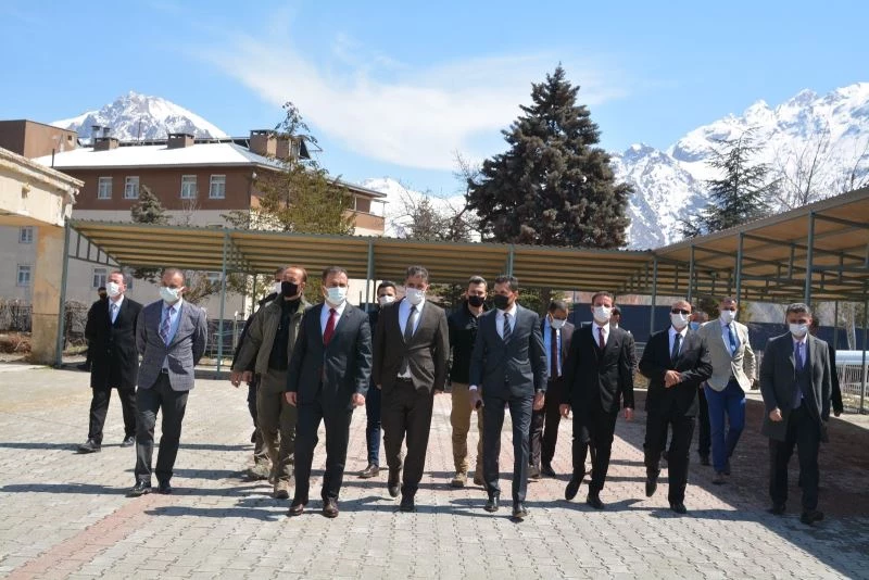 Hakkari Valisi ve Belediye Başkan Vekili İdris Akbıyık, 2021-2023 Değişim ve Dönüşüm Projesi kapsamında yapımına başlanan halk pazarında incelemelerde bulundu.