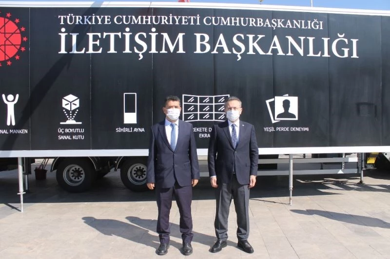 Cumhurbaşkanlığı İletişim Başkanlığı tarafından hayata geçirilen, Türkiye’nin milli, tarihi, kültürel, bilimsel ve teknolojik zenginliklerinin dijital sunumlarla anlatıldığı Dijital Tır, Aydınlılarla buluştu. Bu kapsamda Aydın Valisi Hüseyin Aksoy da Dijital Tır’ı ziyaret ederek, incelemelerde bulundu. Vali Aksoy’u ziyarette üç boyutlu görünüme sahip, yüksek teknoloji unsurlarıyla oluşturulmuş bilgi akışını aktaran holografik sunucu karşıladı. Harekete duyarlı ekran, 3 boyutlu sanal kutu, yeşil perde ve sihirli ayna deneyim alanlarını da inceleyen Vali Aksoy, Türkiye’nin sahip olduğu birçok özelliğin tır içerisinde vatandaşlarla paylaşıldığını söyledi.